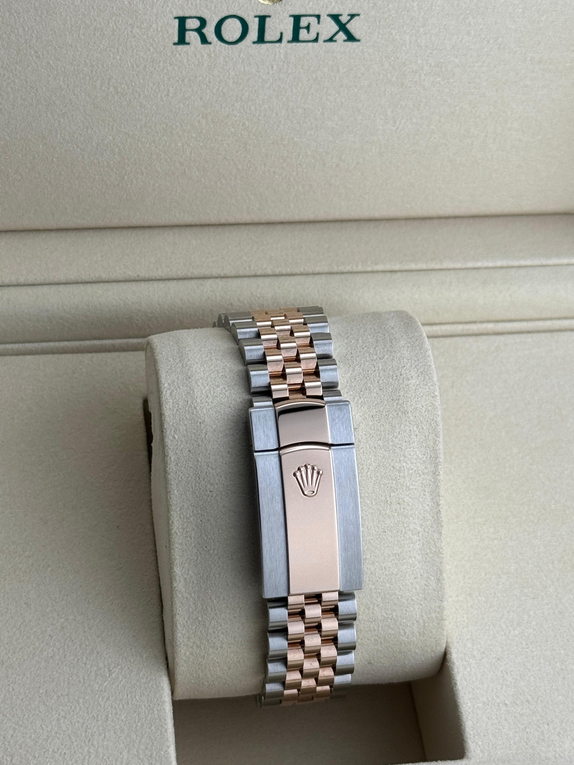 The Rolex Datejust 36mm Steel & Rose Gold with Wimbledon Dial and Jubilee bracelet, 2024 edition, exemplifies timeless elegance and precision engineering. Crafted from stainless steel and 18k rose gold, this model features the distinctive Wimbledon green dial, offering a refined aesthetic with excellent legibility. The Jubilee bracelet ensures both comfort and durability, while the robust automatic movement guarantees reliable performance. Perfect for collectors and aficionados seeking a versatile yet luxurious timepiece that seamlessly blends heritage with contemporary style.